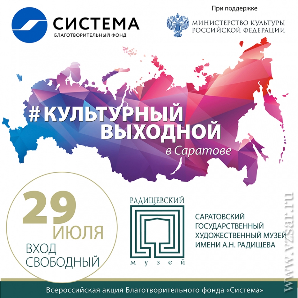 "Культурный выходной" — всероссийская акция, в рамках которой благотворительный фонд "Система" сотрудничает с крупнейшими музеями страны и открывает их двери для бесплатного посещения на один-два выходных дня.
