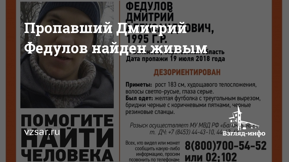 Пропавший Дмитрий Федулов найден живым