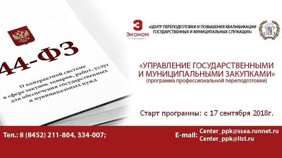 Центр переподготовки и повышения квалификации государственных и муниципальных служащих: Саратов, ул. Радищева,89, каб. 306. E-mail: Center_ppk@list.ru