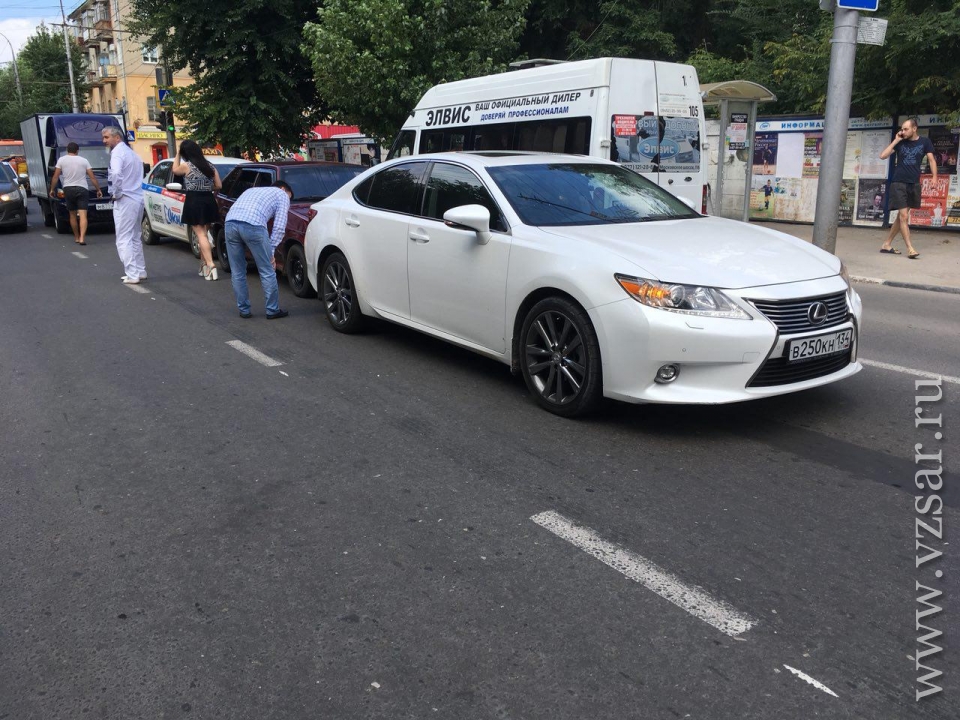 Авария произошла на улице Чернышевского неподалеку от пересечения с Бабушкиным взвозом. Водитель мини-грузовика "Хундай" отвлекся и протаранил такси "Шкода". Та врезалась в ВАЗ-2114, которая "паровозом" задела "Лексус" с волгоградскими номерами.