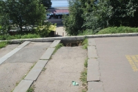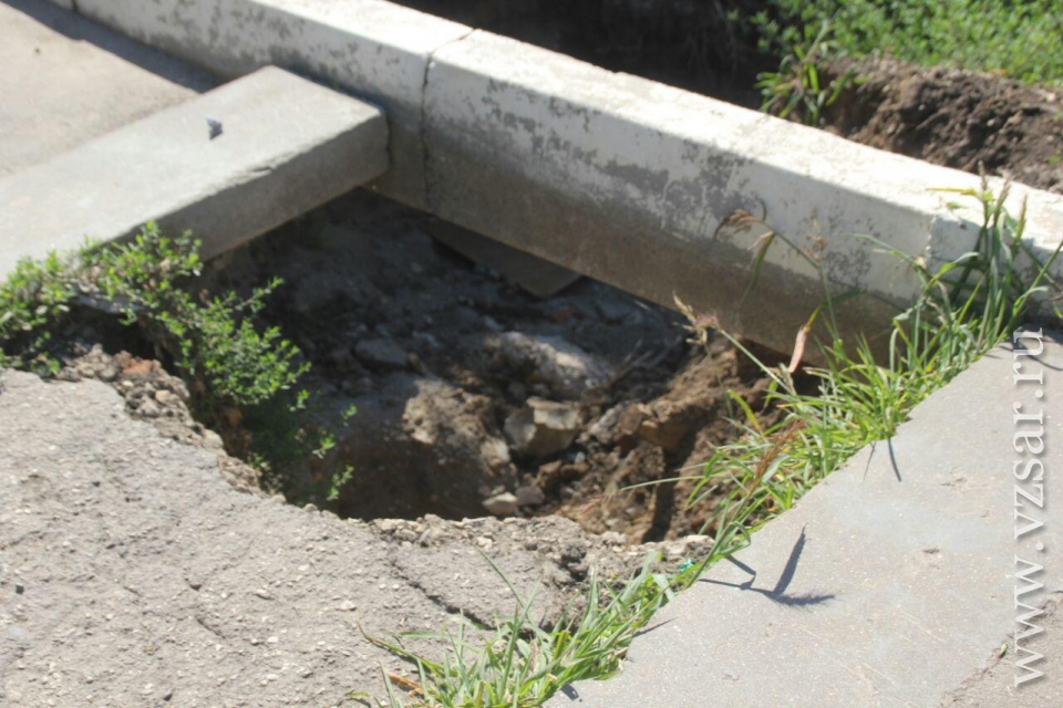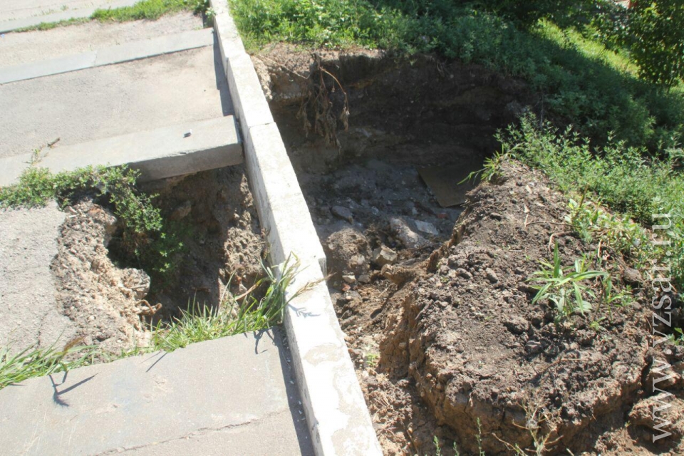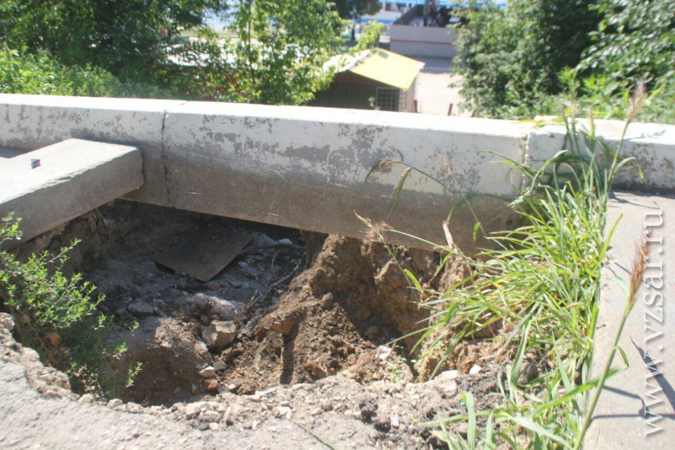 Так , на другом конце Набережной Космонавтов, недалеко от памятника Гагарину и лавочки с надписью "Я люблю Саратов", можно попасть в провал. Часть земли вместе с асфальтом ушла вниз по склону, из-за чего образовалась достаточно крупная дыра.