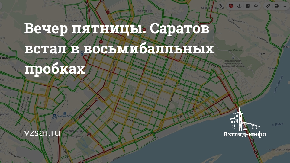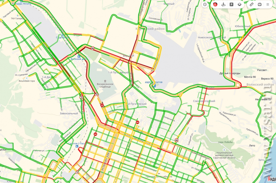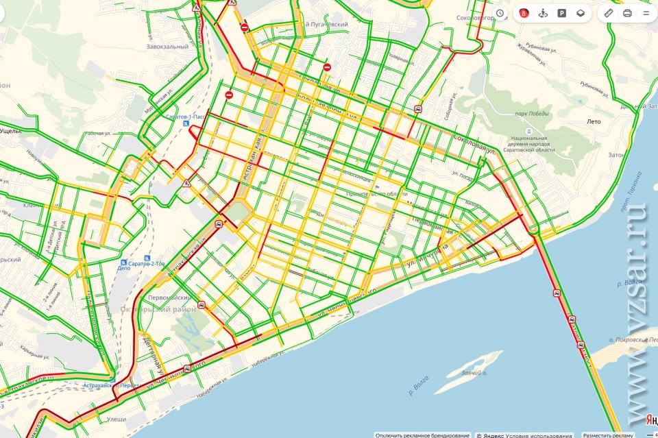 Первую пятницу августа саратовцы провожают в серьезных пробках по всему городу. Об этом свидетельствует сервис "Яндекс. Пробки".