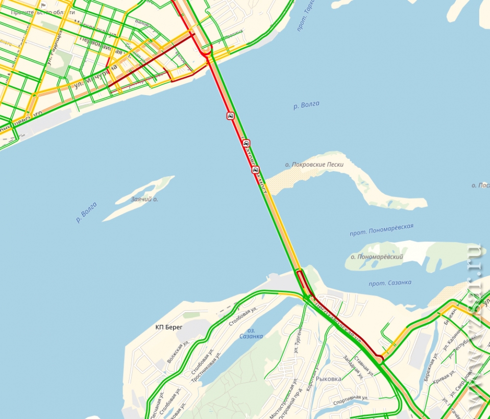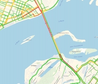 Также "побордовел" старый мост "Саратов-Энгельс". Здесь зафиксировано сразу три аварии, со стороны обоих городов въезд на мост затруднен.