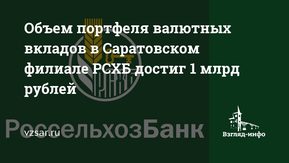 Объем портфеля валютных вкладов в Саратовском филиале РСХБ достиг 1 млрд рублей