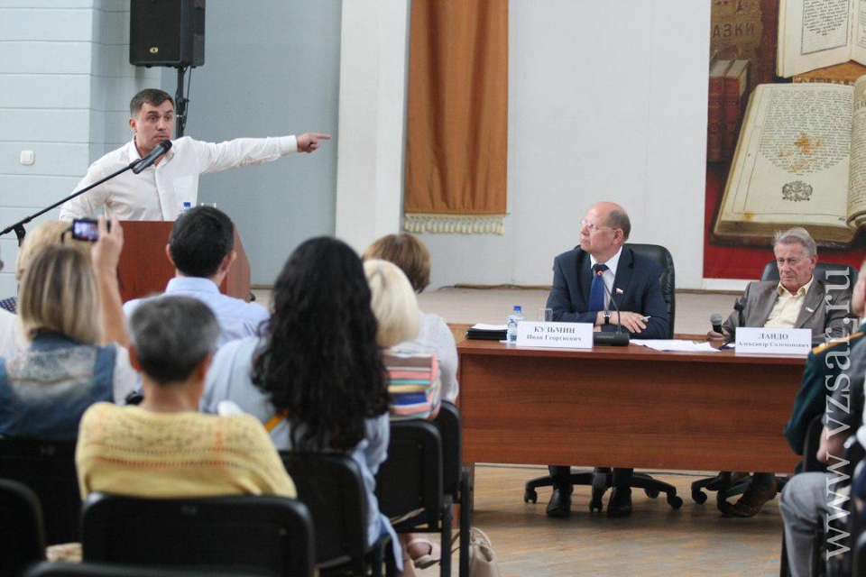 Представляющий КПРФ депутат облдумы Александр Анидалов попытался прервать докладчика, но Ландо предложил парламентарию "успокоиться".