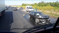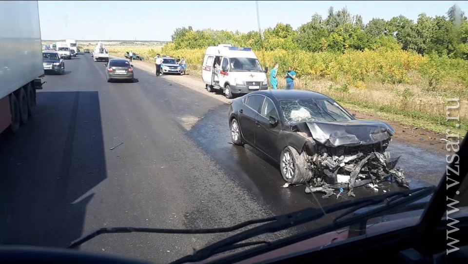 По данным ведомства, в 12.00 на 321-м километре автодороги Саратов-Волгоград 59-летний водитель "Мазды" из Сызрани не справился с управлением и выехал на полосу встречного движения, где столкнулся с "ВАЗ-2106" и "Ладой Калиной".