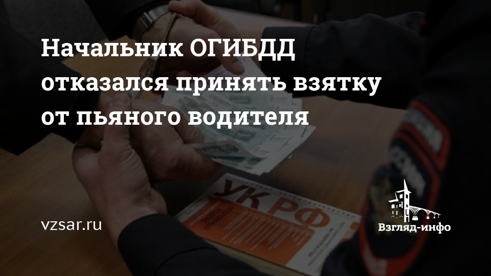 Начальник ОГИБДД отказался принять взятку от пьяного водителя