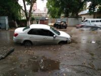 А на Белоглинской, недалеко от пересечения с улицей 53-й Стрелковой дивизии, в размытую дождем яму провалился очередной автомобиль.