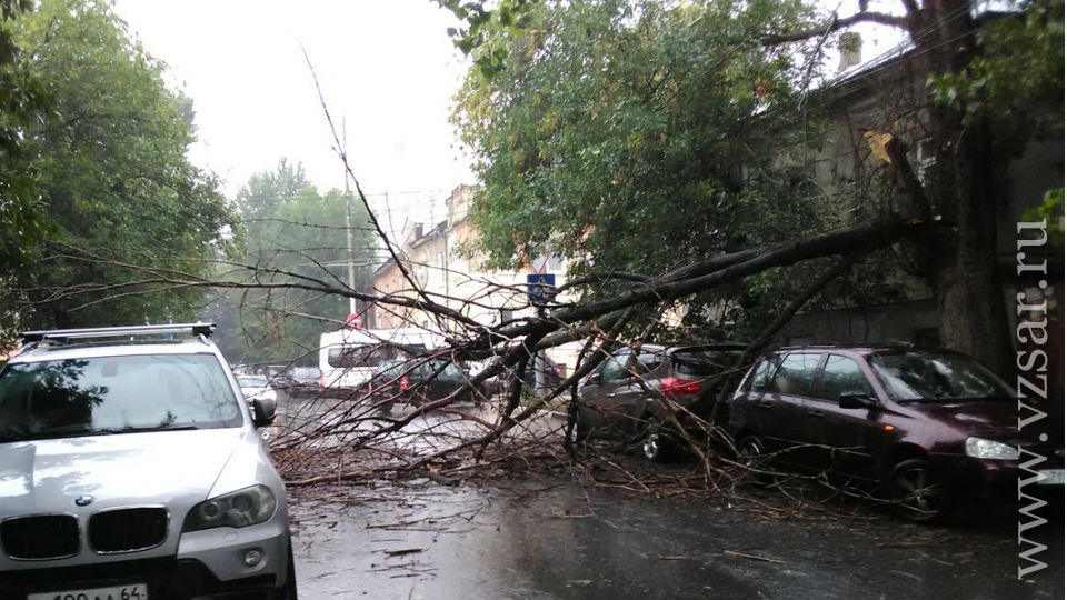 В старом центре Саратова, на улице Соборной, сегодня от ветра и дождя обломилось дерево. Фото появилось в группе "Типичный Саратов".