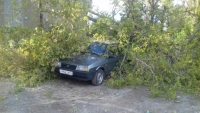 Напротив дома №16А по улице Пролетарская дерево упало на припаркованный рядом с ним автомобиль "ВАЗ". У машины оказалась повреждена задняя часть и крыша.