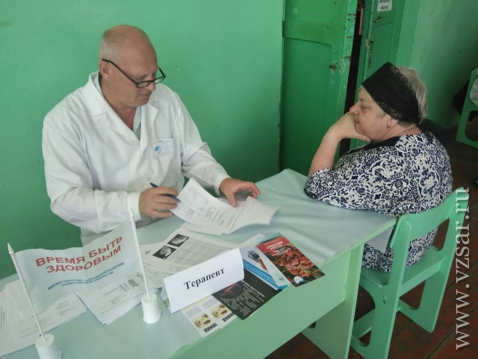 В соседнем с ФАПом здании сельского клуба была развернута работа мобильной медицинской бригады: врачи, в том числе узких специальностей из саратовских медучреждений, регионального центра медицинской профилактики и Татищевской районной больницы, вели прием местных жителей, их обследование. Любой желающий мог получить квалифицированную помощь офтальмолога, эндокринолога, кардиолога, невролога, терапевта, измерить давление, уровень сахара в крови, индекс массы тела, сделать прививку от гриппа и другие медицинские манипуляции. Студенты медколледжа раздавали всем пришедшим памятки по профилактике заболеваний и выявлению факторов риска для здоровья.