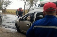 По данным областной ГИБДД, авария произошла в 8.59 близ села Быков Отрог. Водитель "Рено Логан" в пути следования не справился с управлением и допустил столкновение с грузовой "Газелью" (термобудка). Водитель "Газели" доставлен в больницу в тяжелом состоянии.