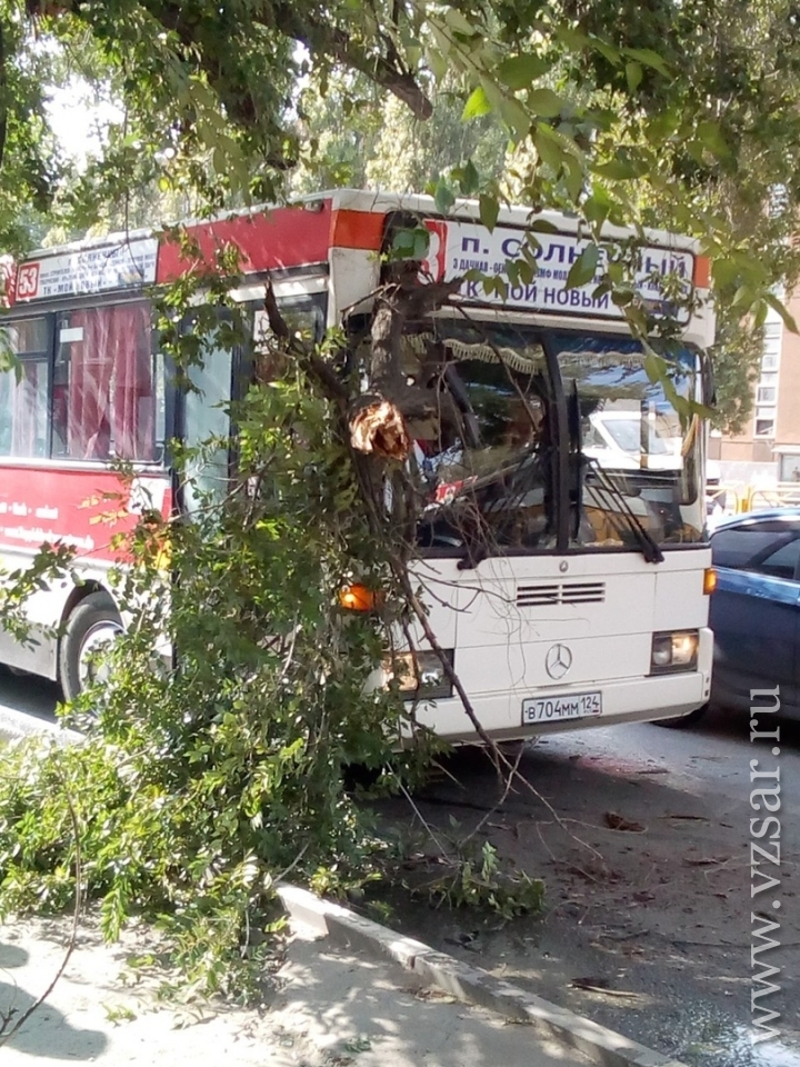 Сегодня в Ленинском районе Саратова на автобус 53-го маршрута повалилось дерево. Как рассказали очевидцы в социальных сетях, ЧП произошло недалеко от остановки "75-я школа" на проспекте Строителей.