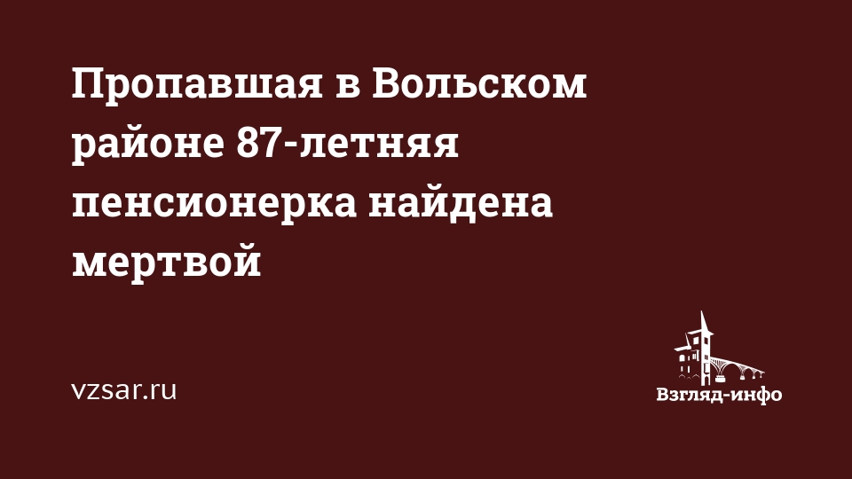 Пропавшая в Вольском районе 87-летняя пенсионерка найдена мертвой