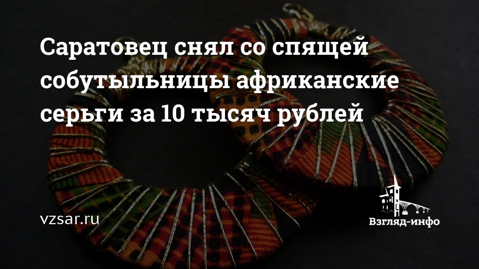 Саратовец снял со спящей собутыльницы африканские серьги за 10 тысяч рублей