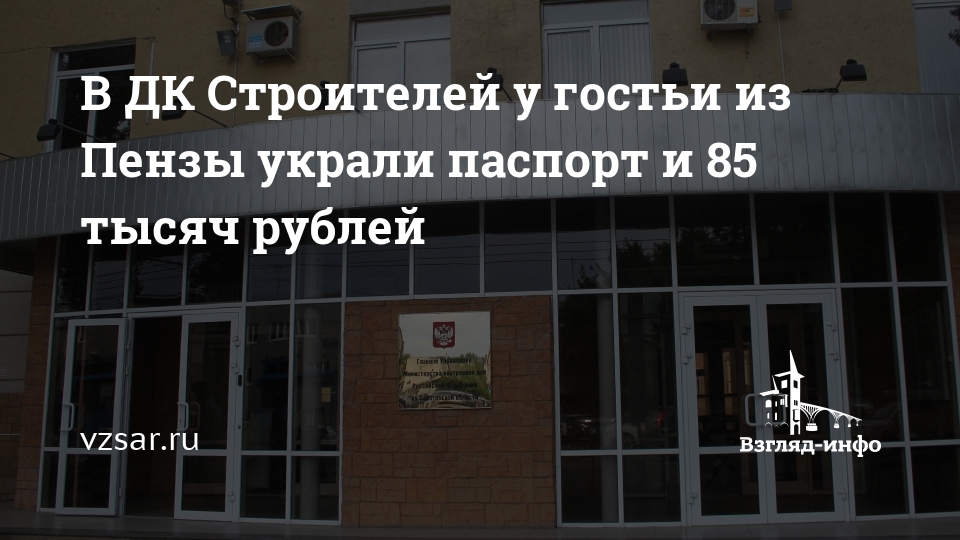 В ДК Строителей у гостьи из Пензы украли паспорт и 85 тысяч рублей