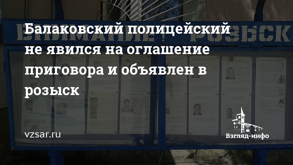 Балаковский полицейский не явился на оглашение приговора и объявлен в розыск