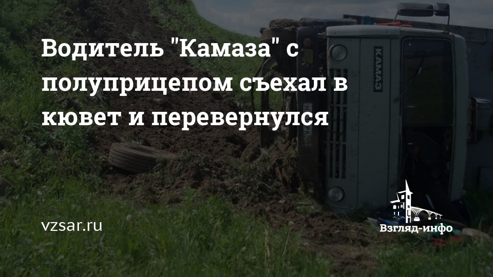 Водитель "Камаза" с полуприцепом съехал в кювет и перевернулся