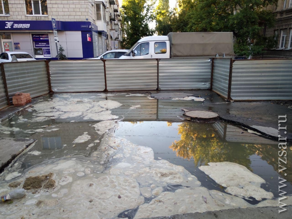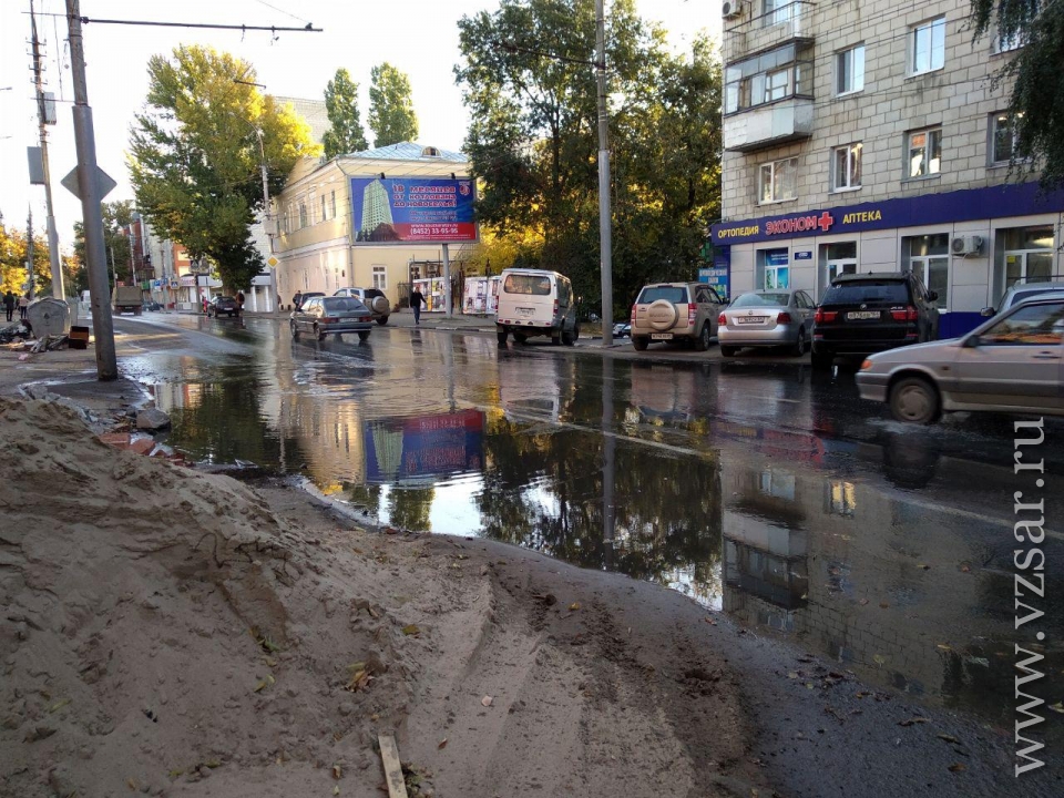"Не успели работники "Водоканала" откопать одну трубу, как у дома № 189 по улице Чернышевского появилась новая течь. Теперь вода пробивается сквозь асфальт во дворе. Боимся, как бы не затопило подвалы нашего дома, и не "поплыл" сам фундамент.