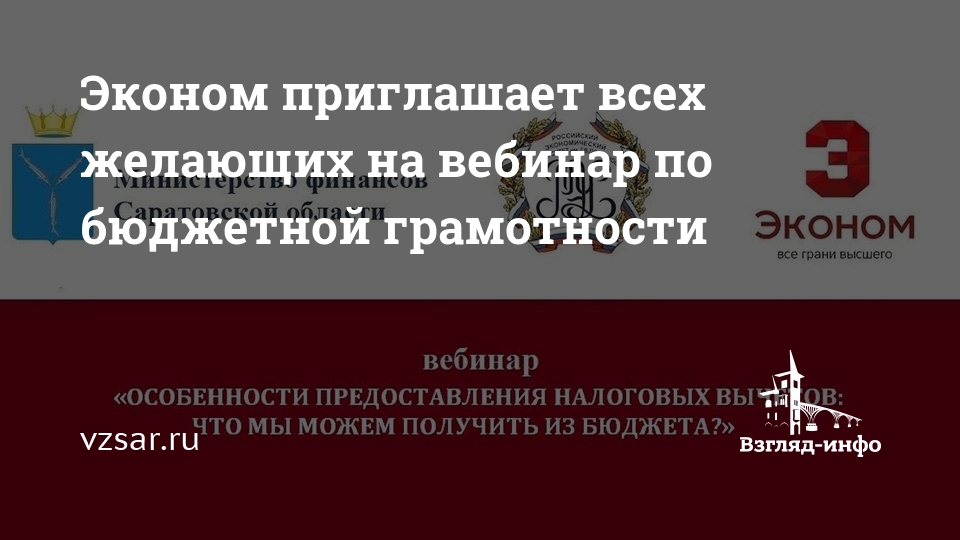 Эконом приглашает всех желающих на вебинар по бюджетной грамотности