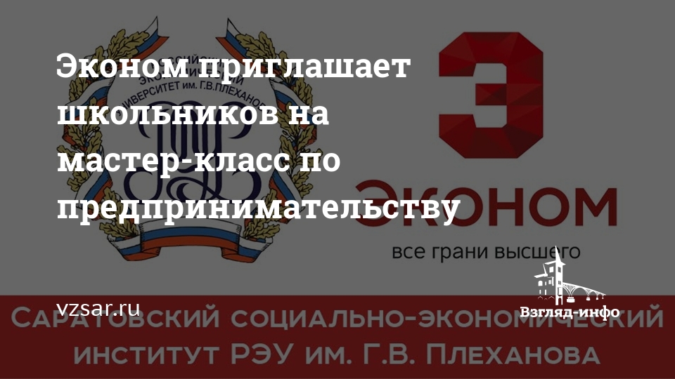 Саратовский социально-экономический институт РЭУ имени Плеханова приглашает учащихся 9-11 классов школ, лицеев, гимназий стать участниками познавательного мастер-класса, организованного кейс клубом Эконома и Центром развития молодежного предпринимательства вуза.