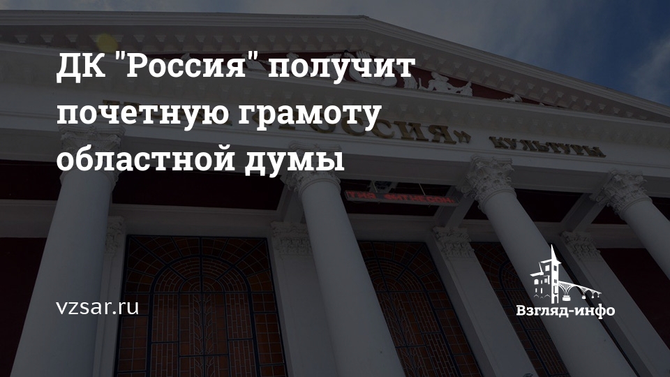 ДК "Россия" получит почетную грамоту областной думы