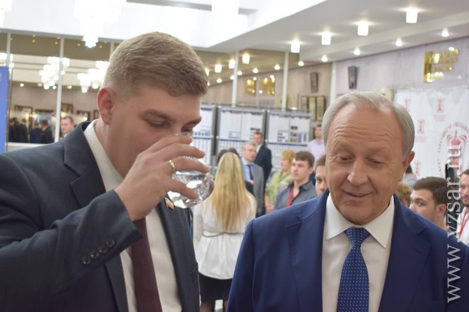 На выставке в облдуме Иван Кузьмин напоил Дмитрия Пьяных очищенной водой