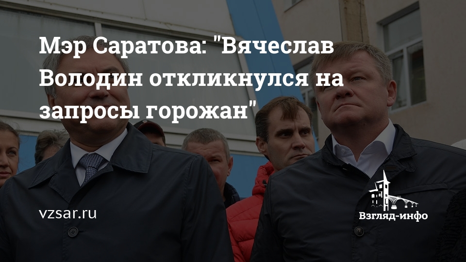 Мэр Саратова: "Вячеслав Володин откликнулся на запросы горожан"