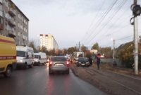 По предварительным данным, на улице Огородняя водитель "Шевроле" столкнулся с несколькими машинами, после чего автомобиль откинуло на трамвайные пути. В результате аварии госпитализированы женщина с ребенком, находившиеся в салоне "Митцубиси".