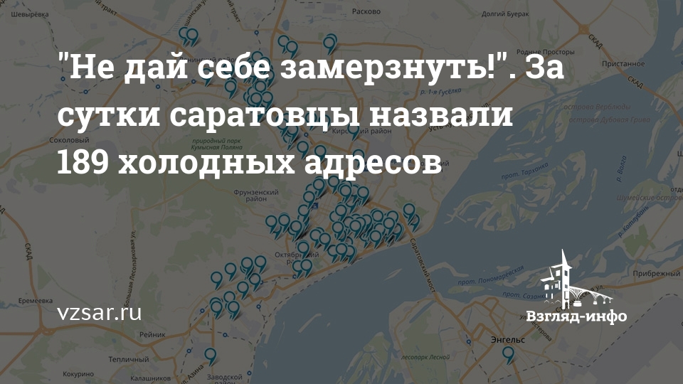 На сайте ИА "Взгляд-инфо" уже две недели продолжается социальная акция "Не дай себе замерзнуть!". За последние сутки читатели включили в списки адреса 189 саратовских домов.