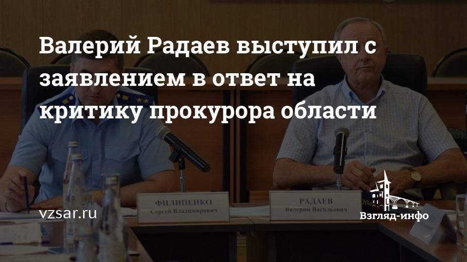 Валерий Радаев выступил с заявлением в ответ на критику прокурора области