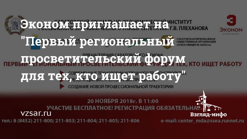Эконом приглашает на "Первый региональный просветительский форум для тех, кто ищет работу"