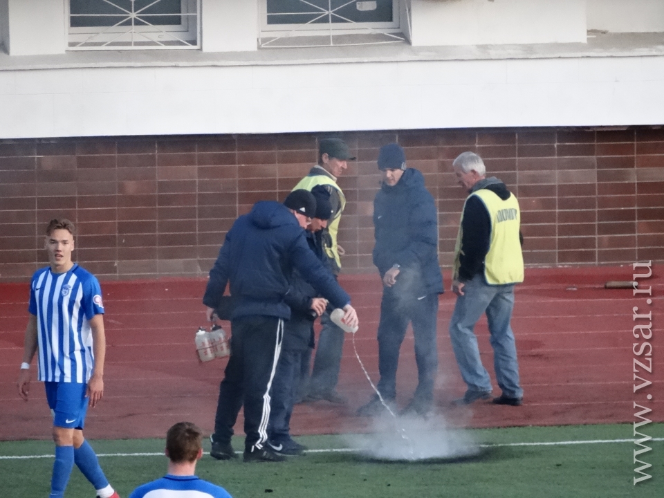 Первый гол последнего для саратовской команды домашнего матча 2018 года был забит на 15-й минуте Евгением Дудиковым с пенальти, назначенного за фол на Федоре Дворникове. 28 минут спустя сам Федор удвоил преимущество саратовцев.