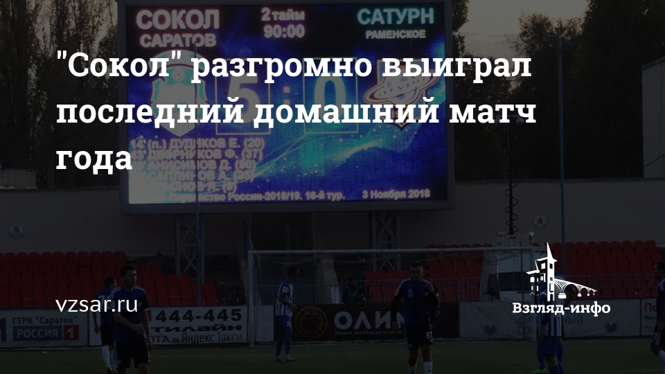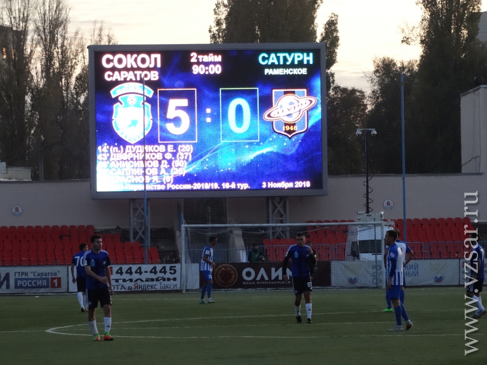 Только что на саратовском стадионе "Локомотив" футболисты "Сокола" разгромили "Сатурн" (Раменское, Московская область) со счетом 5:0.