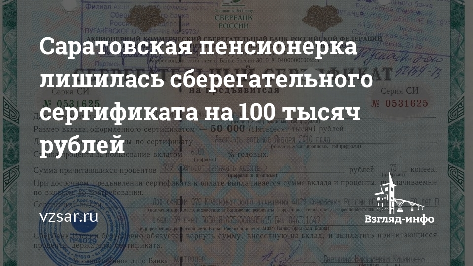 Саратовская пенсионерка лишилась сберегательного сертификата на 100 тысяч рублей