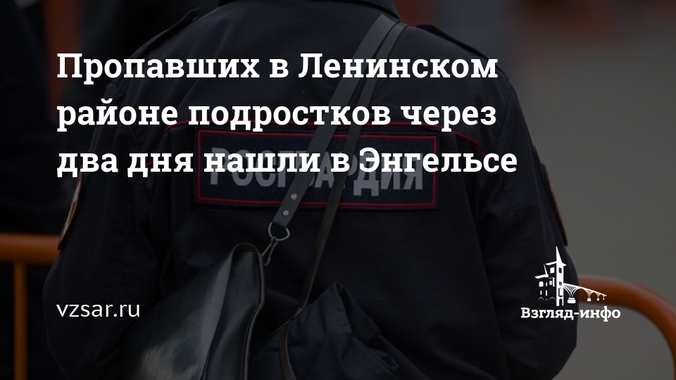 Вчера в Энгельсе росгвардейцы обнаружили подростков 14 и 16 лет, которых два дня разыскивали родители. Об этом ИА "Взгляд-инфо" сообщили в пресс-службе управления Росгвардии по Саратовской области.