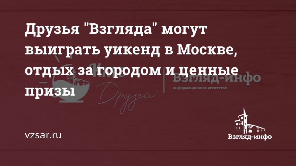Друзья "Взгляда" могут выиграть уикенд в Москве, отдых за городом и ценные призы