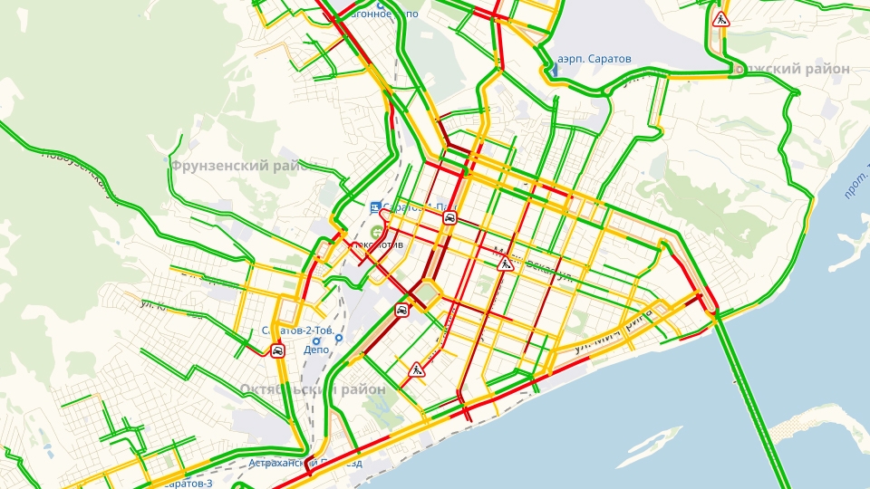 Что касается окраин, то проспект Строителей и Вольский тракт совместными усилиями образовали пробку длиной 3,5 километра.