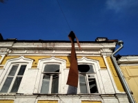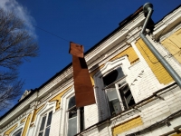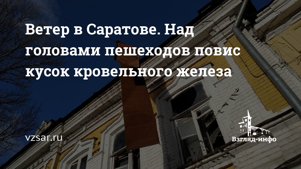 Сегодня в центре Саратова сильным ветром в крыши дома сорвало кусок кровли. Теперь проходящие мимо дома № 124 по улице Челюскинцев пешеходы рискуют получить серьезную травму.