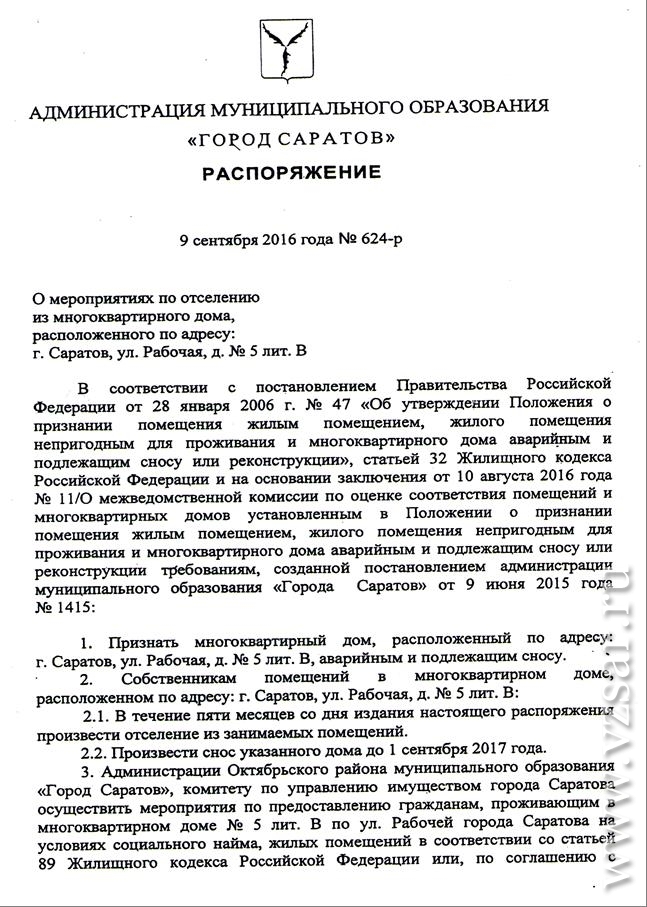 "Еще в 2016 году здание представляло угрозу для жителей: поврежденные печи, трещины по несущим стенам, опасные перекрытия – все это не предвещало ничего хорошего. Администрацией Саратова было принято решение о расселении дома и сносе до 1 сентября 2017 года, однако, оно так и не было исполнено", – рассказала сопредседатель Саратовского регионального штаба ОНФ Людмила Бокова.