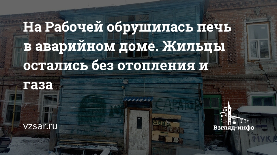 В Саратове жители аварийного дома на Рабочей остались без отопления из-за обрушения печи. Об этом сообщает пресс-служба ОНФ.