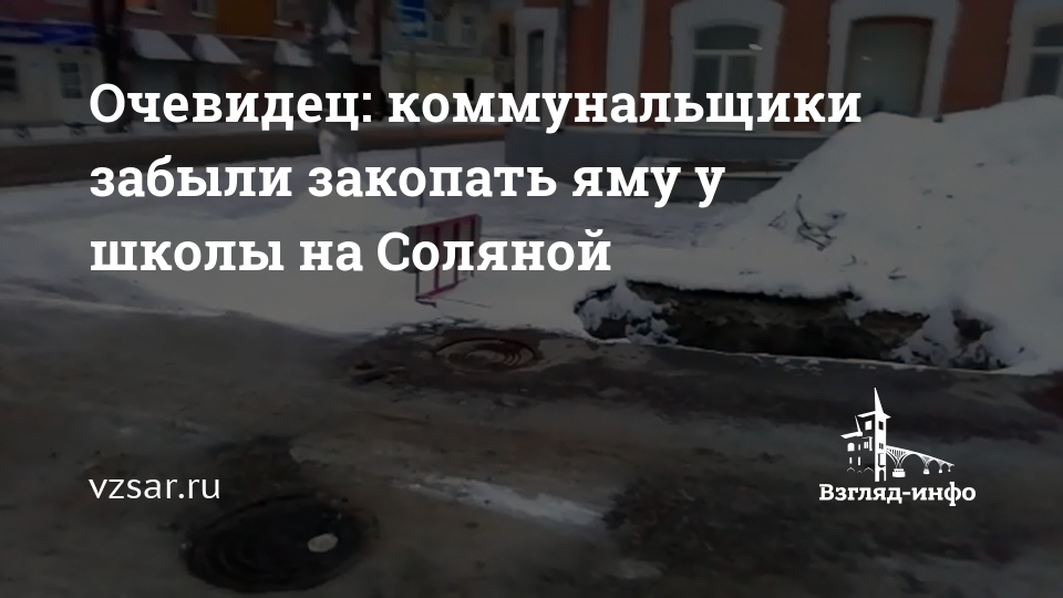 Очевидец: коммунальщики забыли закопать яму у школы на Соляной