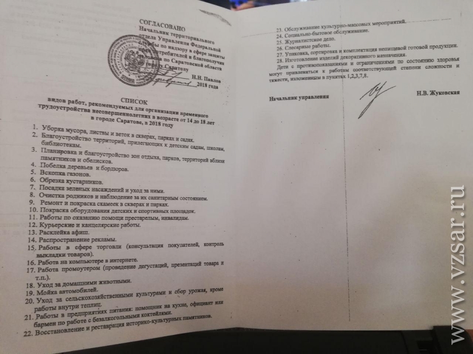 Депутаты вернулись к вопросу трудоустройства несовершеннолетних. И.о. начальника управления по труду и соцразвитию Максим Михайловский предоставил собравшимся подробный перечень, добавив, что он был согласован с Роспотребнадзором.
