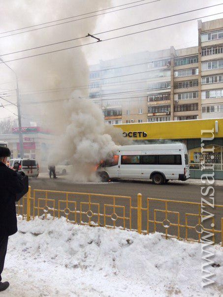 Сегодня утром на проспекте Строителей Энгельса загорелось маршрутное такси. Видео ЧП появилось в социальных сетях.