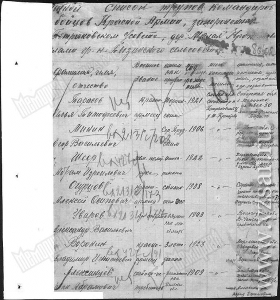 Летом 1993 года участники поисковой экспедиции в Сычевском районе Смоленской области подняли останки 124 бойцов и младших командиров Красной Армии. 19 августа они были перезахоронены на братском кладбище в деревне Аристово как безымянные герои Великой Отечественной.