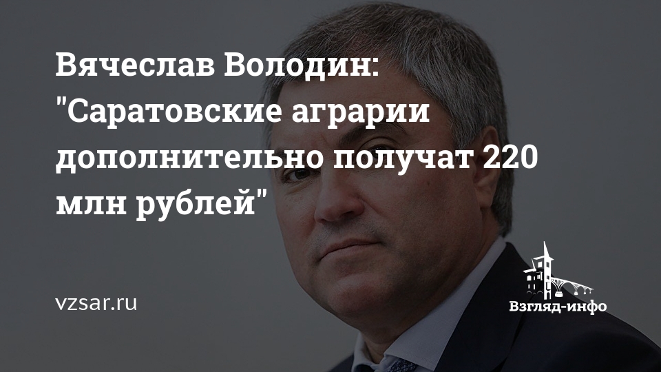 Вячеслав Володин: "Саратовские аграрии дополнительно получат 220 млн рублей"