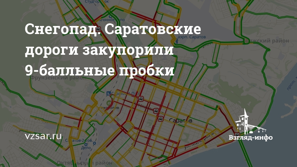 Вечером пятницы жители Саратова утопают в снегу, а автомобили стоят в девятибалльных пробках. Об этом свидетельствуют данные сервиса "Яндекс.Карты".