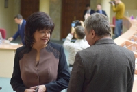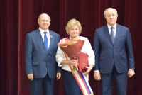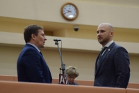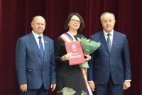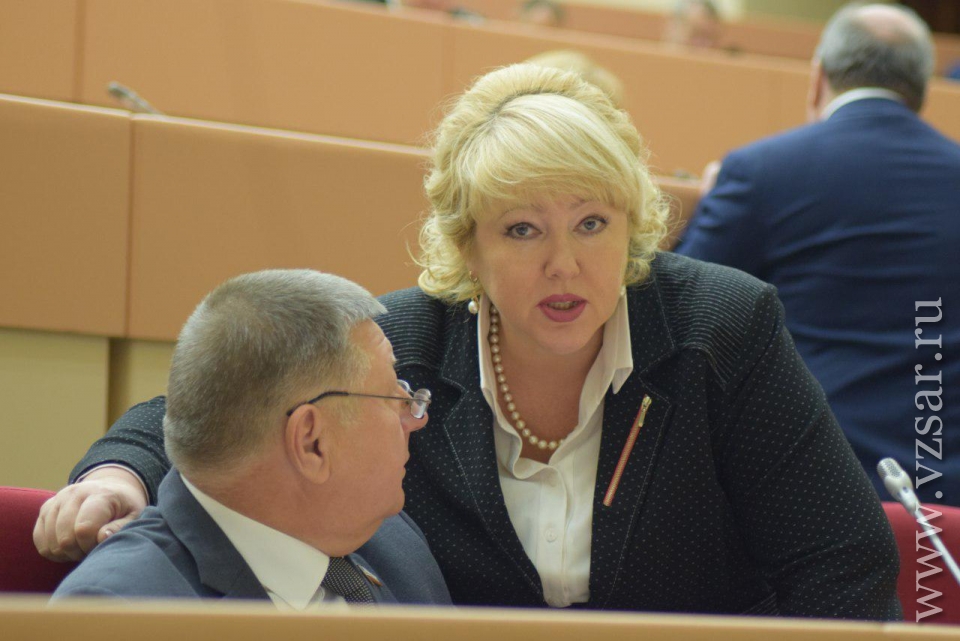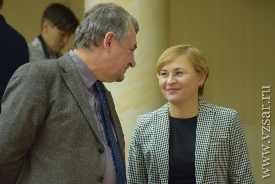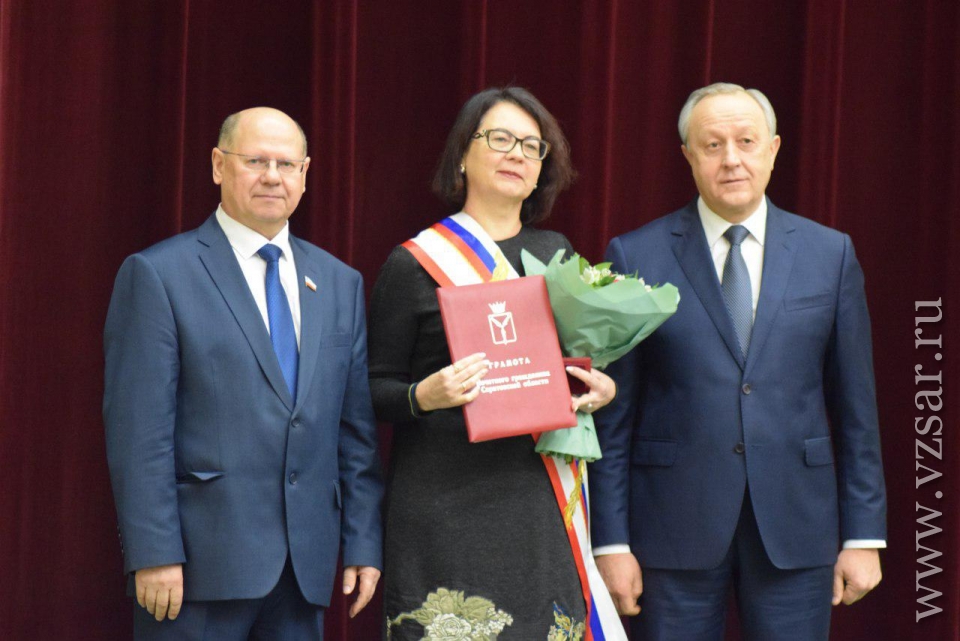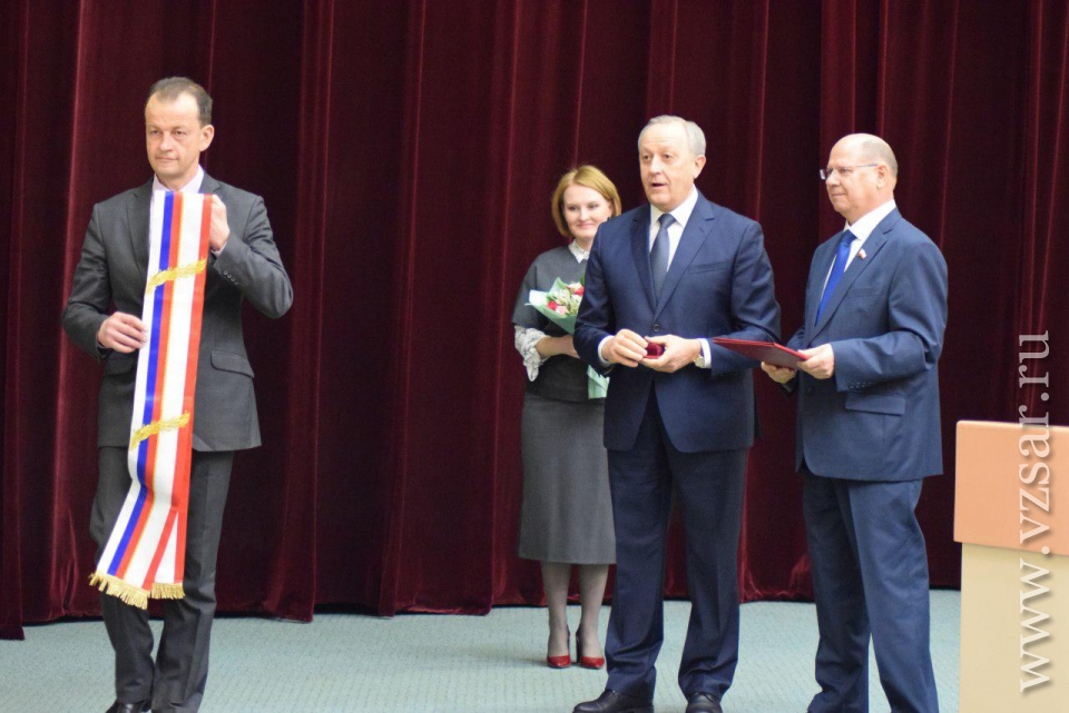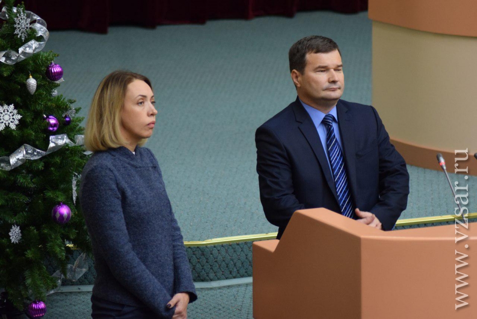 В самом начале спикер Иван Кузьмин (ЕР) и губернатор Валерий Радаев вручили символы новым почетным гражданам - учителю химии ФТЛ № 1 Татьяне Дувановой (победитель конкурса "Поощрение лучших учителей") и председателю Общества трезвости и здоровья Наталии Корольковой.