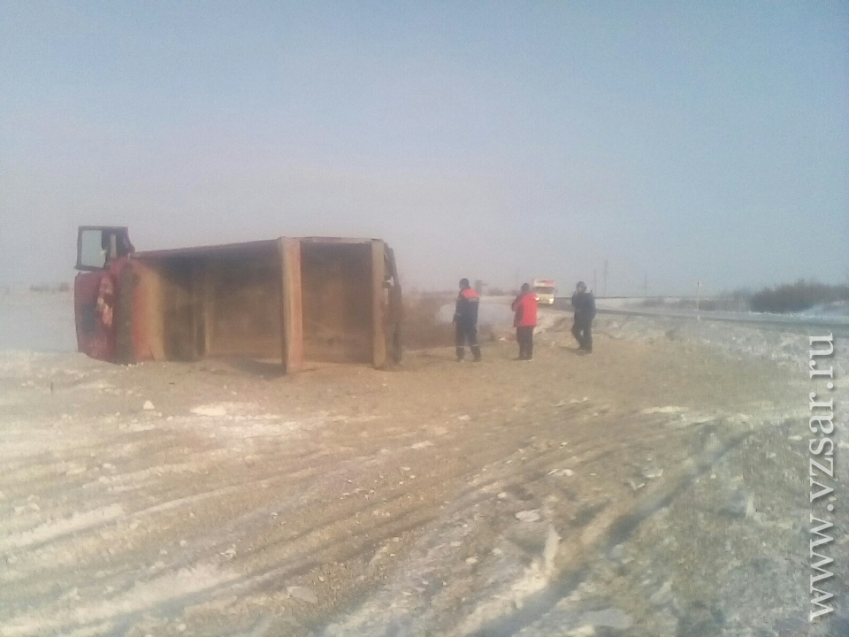 Авария произошла в 13.10 на 231 км дороги Самара-Волгоград. 53-летний водитель грузовика "МАН" допустил опрокидывание транспорта. В результате с травмами его госпитализировали.