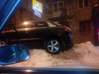 "Стояла на заправке, смотрю - "Ауди" пролетает, пытается повернуть налево, занесло. Он подлетает и прямо на сугроб, сбил дорожный знак", - рассказывает пользователь Дарья.